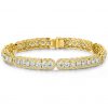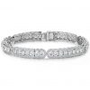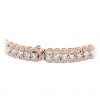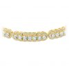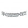 A perfect match to the Aurora Line Necklace, this line bracelet features diamonds surrounded by intricate diamond halos, giving the design the look of woven diamond embroidery. This bracelet maintains its oval shape when worn, lending it a structured and elegant appeal.