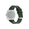 - Steel case, 3 windows indicating hour, minute & date, green leather strap
