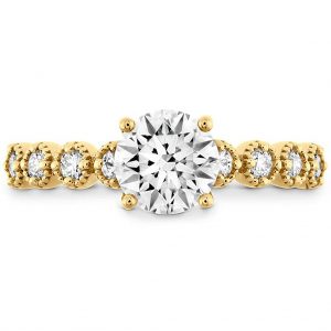 Hearts on Fire Diamond Bar Single Prong Milgrain Engagement Ring 18K Yellow Gold – HBSDBSMIL00308Y