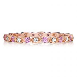 HENRI DAUSSI – 14 Karat Rose Gold Pink Sapphire and Diamond Band R26-7 H
