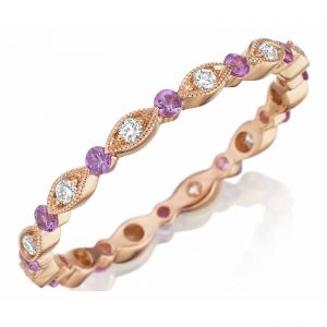 HENRI DAUSSI – 14 Karat Rose Gold Pink Sapphire and Diamond Eternity Band R26-7 E