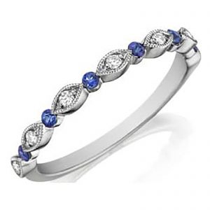 HENRI DAUSSI – 14 Karat White Gold Diamond and Blue Sapphire Band