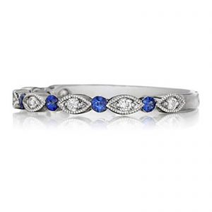 HENRI DAUSSI – 14 Karat White Gold Diamond and Blue Sapphire Band