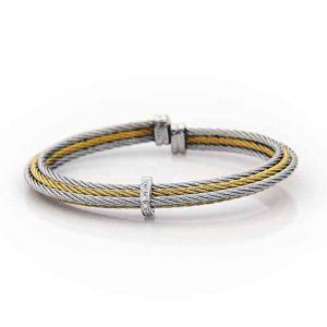 Alor Women’s 18k White Gold /Sterling Silver/ Yellow Acent Cable Diamond Bracelet – Sale – 91056