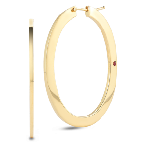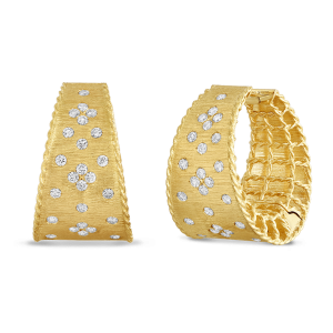 Roberto Coin 18K Gold Tapered Hoops With Fleur De Lis Diamonds – 7771422AYERX-0
