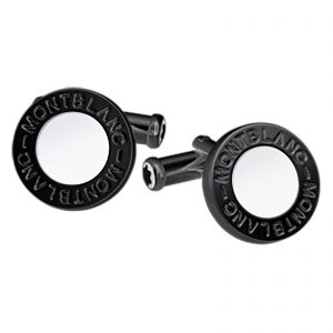 Montblanc Cuff Links, round in stainless steel and onyx inlay 5.60 ct per pair 107463