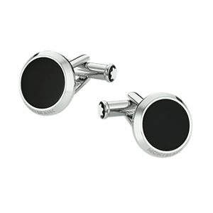 Montblanc Cuff Links, round in stainless steel, Montblanc engraved and black onyx 5.00 ct per pair112896
