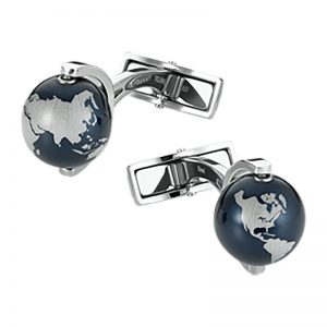 Montblanc Cuff Links, globes in stainless steel, alu bead, ocean in anodized blue finish 112998