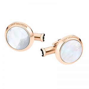 Montblanc Cuff Links, round in stainless steel with red gold-colored PVD finish and mother-of-pearl inlay 116662