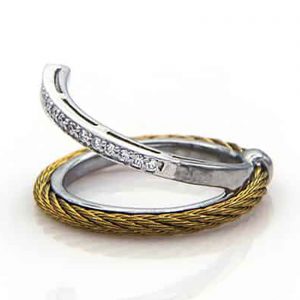 Alor Women’s 18 White Gold/Sterling Silver/Yellow Accent Cable Diamond Bracelet – Sale – 94491
