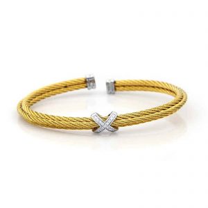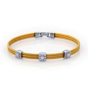 Alor Women’s 18k White Gold/Sterling Yellow Accent Cable Diamond Bracelet – Sale – 90922