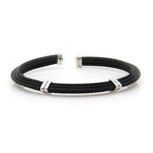 Alor Men’s 18k White Gold/sterling Silver Black Cable Cuff Bracelet – Sale – 04-12-4320-00 – 270284