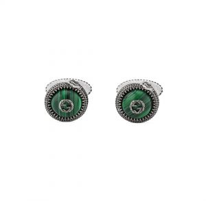 Gucci Cufflinks with Double G and snake motif in aged sterling silver and green resin – YBE577426001