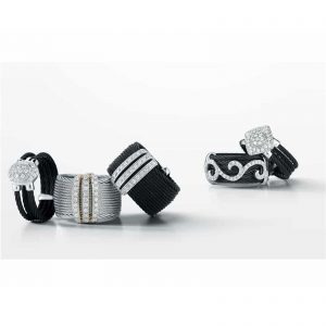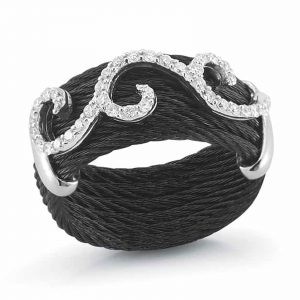 ALOR Black cable 6 row 1.6mm, 18K White Gold, 0.32 total carat weight Diamonds and stainless steel. 02-52-0961-11 122433