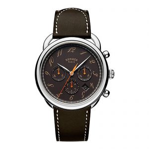 HERMES ARUSO CHRONO BROWN DIAL CALF LEATHER BELT CHRONOGRAPH DATE MEN WATCH AR4.910.332/VBE