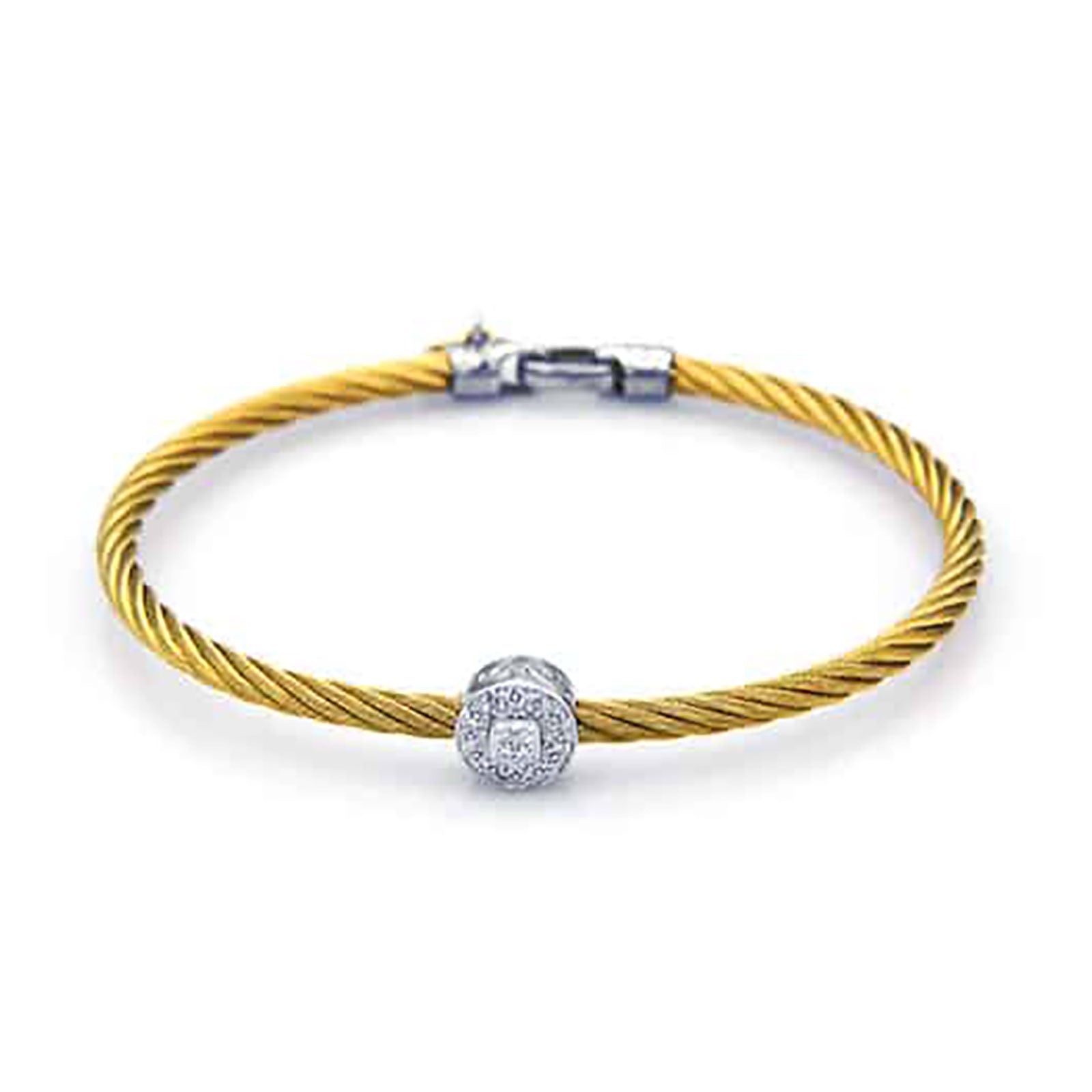 Alor Women’s 18 White Gold/Sterling Silver/Yellow Accent Cable Diamond Bracelet – Sale – 94491