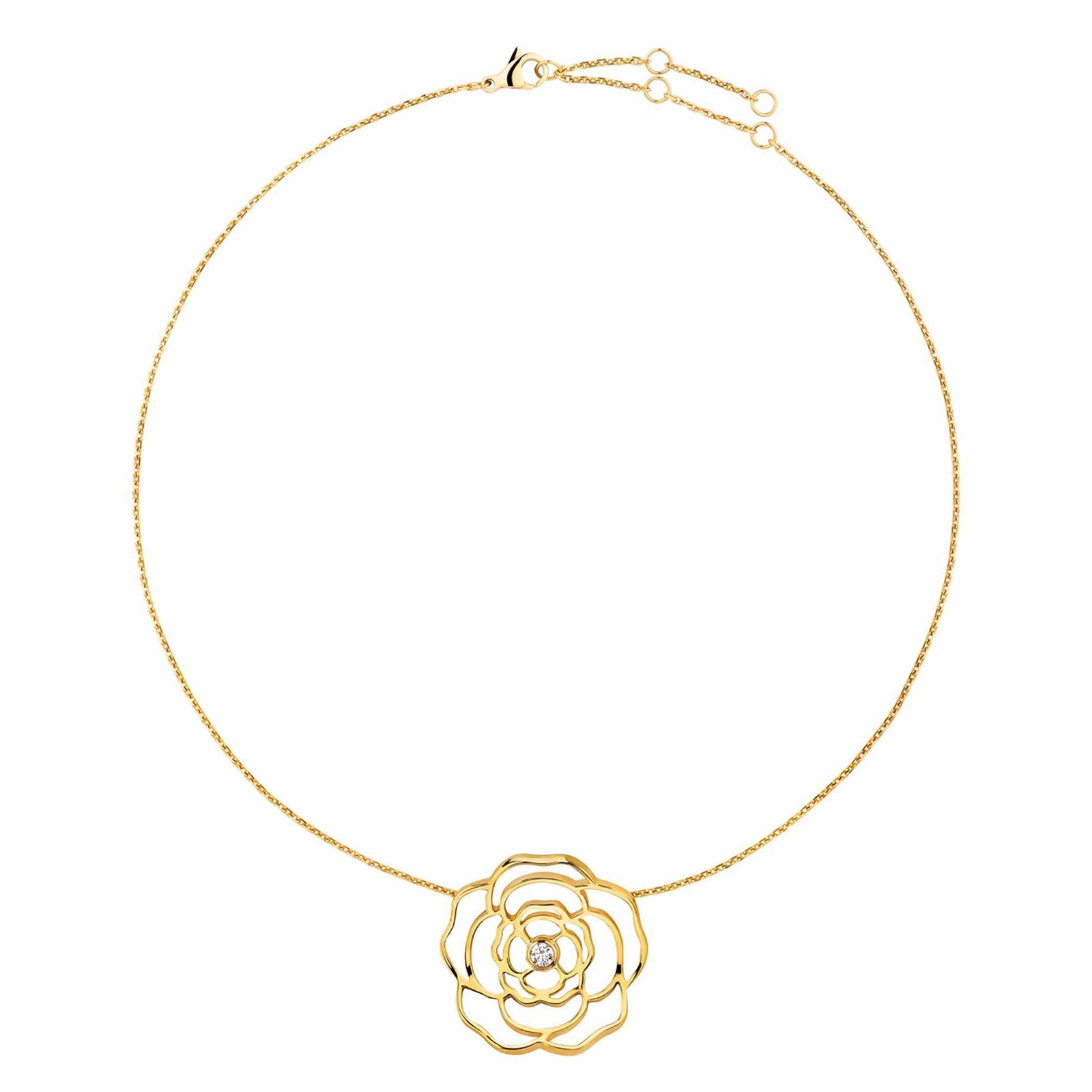 Pétales de Camélia necklace in 18K yellow gold and one center diamond