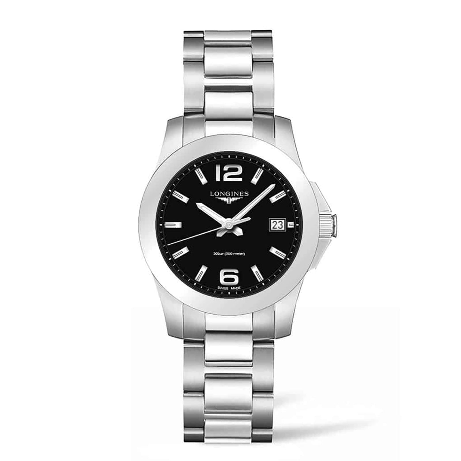 This Conquest watch features a round 34.00mm stainless steel case and water resistance up to 300 meters (999 feet). This watch is enhanced with a black dial and sapphire crystal. The functionality of this timepiece includes hours, minutes, seconds, and date. End of Life (E.O.L.) feature. Explore the Longines L33774586.
