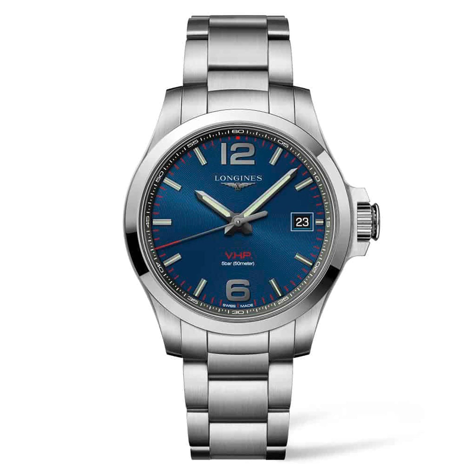 This elegant Conquest V.H.P. watch features a round 41.00mm stainless steel case and water resistance up to 50 meters (167 feet). This watch is enhanced with a blue dial and sapphire crystal. The functionality of this timepiece includes hours, minutes, seconds and date aperture at 3 oÕclock, perpetual calendar, GPD system, shock correction, magnetic field correction Explore the Longines L37164966.