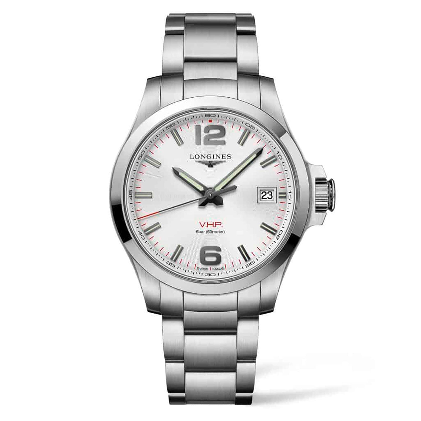 This Conquest V.H.P. watch features a round 41.00mm stainless steel case and water resistance up to 50 meters (167 feet). This watch is enhanced with a silver dial and sapphire crystal. The functionality of this timepiece includes hours, minutes, seconds and date aperture at 3 oÕclock, perpetual calendar, GPD system, shock correction, magnetic field correction Explore the Longines L37164766.