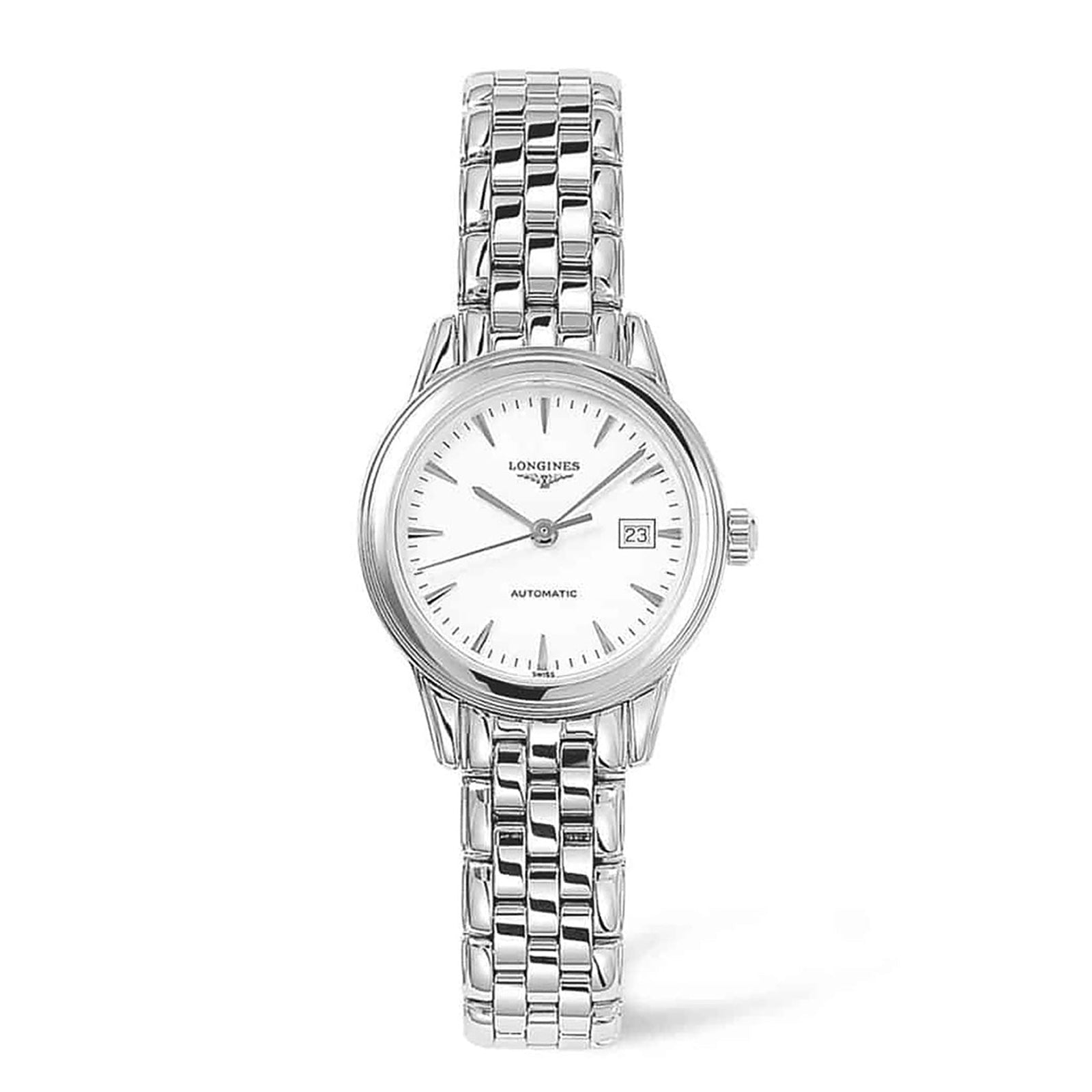 The Flagship automatic watch features a round 30.00mm stainless steel case and water resistance up to 30 meters (100 feet). This watch is enhanced with a white dial and sapphire crystal. The functionality of this timepiece includes hours, minutes, seconds, and date. Explore the Longines L43744126.