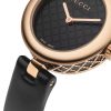 - Pink gold and black PVD case, black lacquered diamond pattern dial, black leather strap