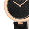 - Pink gold and black PVD case, black lacquered diamond pattern dial, black leather strap