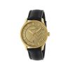- Yellow gold PVD case, yellow gold chevron dial, black leather strap