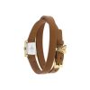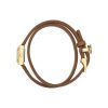 - Yellow gold PVD case, white mother of pearl dial, brown leather double loop strap