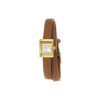 - Yellow gold PVD case, white mother of pearl dial, brown leather double loop strap