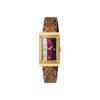 - Yellow gold PVD case, cream-red-blue Sylvie web mother of pearl dial with bees indexes, interchangeable bright cuir ayers strap