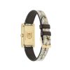 - Yellow gold PVD case, white mother of pearl dial, white leather strap with small flowers print