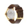 - Yellow gold PVD case, green-red-green web nylon dial with embroidered snake, brown leather strap