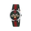 - Steel case, green-red-green web dial with bee embroidery, green-red-green web nylon strap