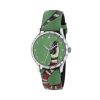 - Steel case and bezel with studs, pastel soft green shanghai leather dial with printed snake head, pastel soft green shanghai leather strap with printed snake body