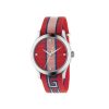 - Steel case, black leather dial and cuff with green-red-green web