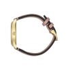 - Yellow gold PVD case, pastel pink mother of pearl dial with four feline heads, pastel pink leather strap
