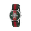 - Steel case, green-red-green web nylon dial with embroidered silver bee, interchangeable green-red-green web nylon strap