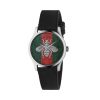 - Steel case, green-red-green web nylon dial with embroidered silver bee , interchangeable black leather strap