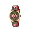- Yellow gold PVD case, GG Canvas leather dial and strap with Apple motif animation