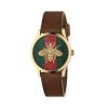 - Yellow gold PVD case, green-red-green web nylon dial with embroidered golden bee, interchangeable camel leather strap