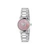 - Steel case and bracelet, pink mother of pearl dial with diamond indexes and feline head