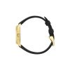- Light yellow gold PVD case, silver diamond pattern dial, black leather strap