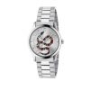 - Steel case, silver dial with colored snake motif, steel bracelet