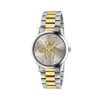 - Steel case, silver sunbrushed dial with bee motif, steel and yellow gold PVD bracelet