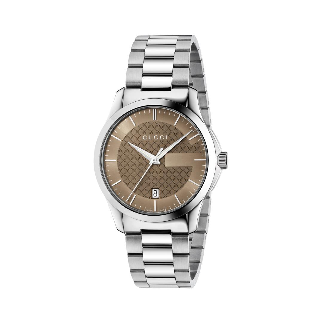 - Steel case, brown diamond pattern dial, steel bracelet