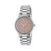 - Steel case with diamonds, pink lacquered dial with bees, steel bracelet