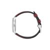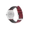 - Steel case, cherry red mother of pearl dial, cherry red lizard strap