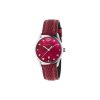 - Steel case, cherry red mother of pearl dial, cherry red lizard strap