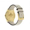 - Yellow gold PVD case, yellow gold sunbrushed dial with bee as seconds hand, white leather strap